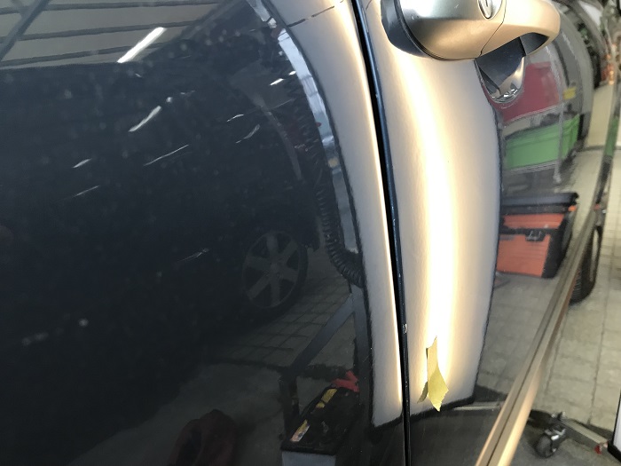 こんばんは。埼玉県羽生市のデントリペアの専門店/エーピットです。 本日は、フィアット500のドアの凹みのデントリペアのご紹介です。 4㎝ほど…